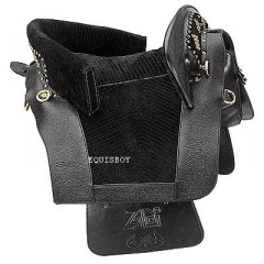 Zadní rozsocha je zvýšená a bočnice jsou v přední části téměř svislé a mají výrazné přední opěry,jezdec má tedy nohy spuštěny více dolů a sedlo podporuje hluboký sed.Dlouhé zápinky umožňují jezdci lepší kontakt s koněm,ale hůře se dotahují.